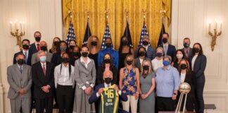 El presidente Biden recibe a las Seattle Storm como campeonas de...